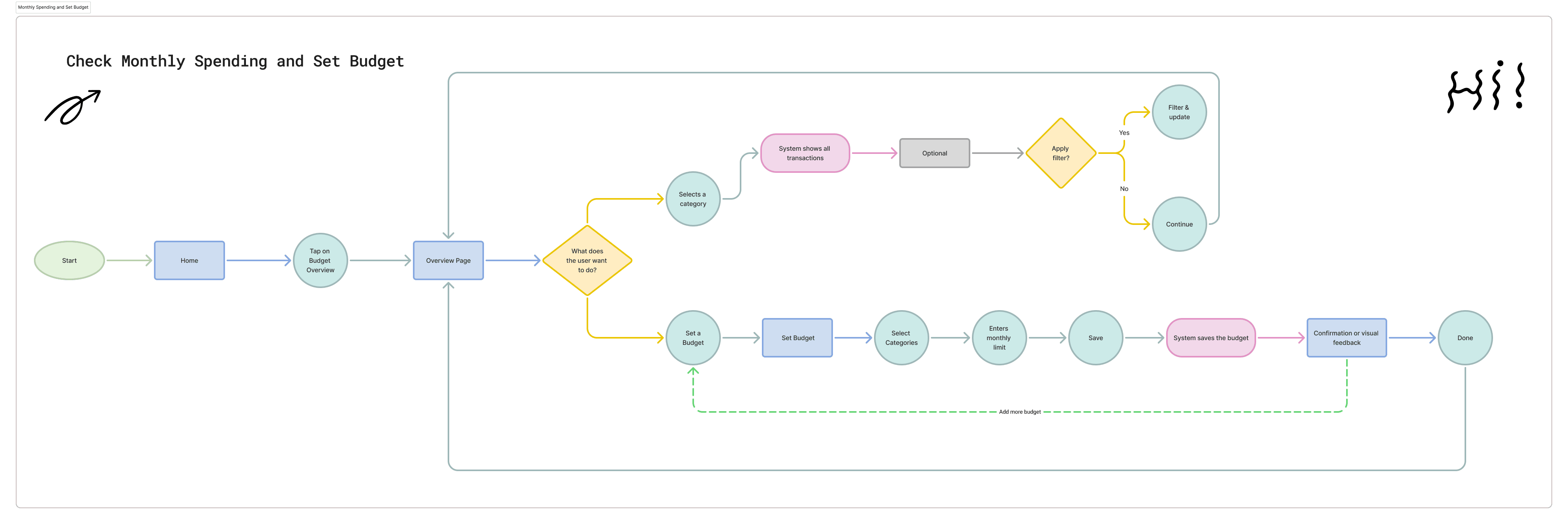 With the feature set defined, the next step was to structure how users would actually navigate and interact with the budgeting functionality. The goal was to keep the experience intuitive, reduce cognitive load, and ensure that checking spending or setting a budget required minimal effort.