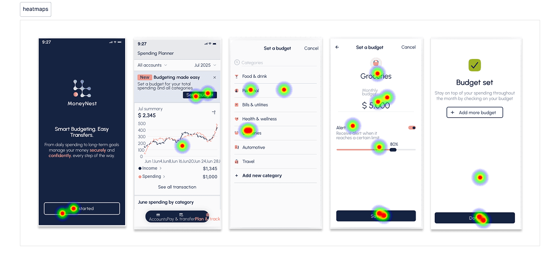 Before finalizing the feature, I conducted remote moderated usability tests to evaluate whether users could confidently set budgets, configure alerts, and navigate between spending insights and budgeting screens.