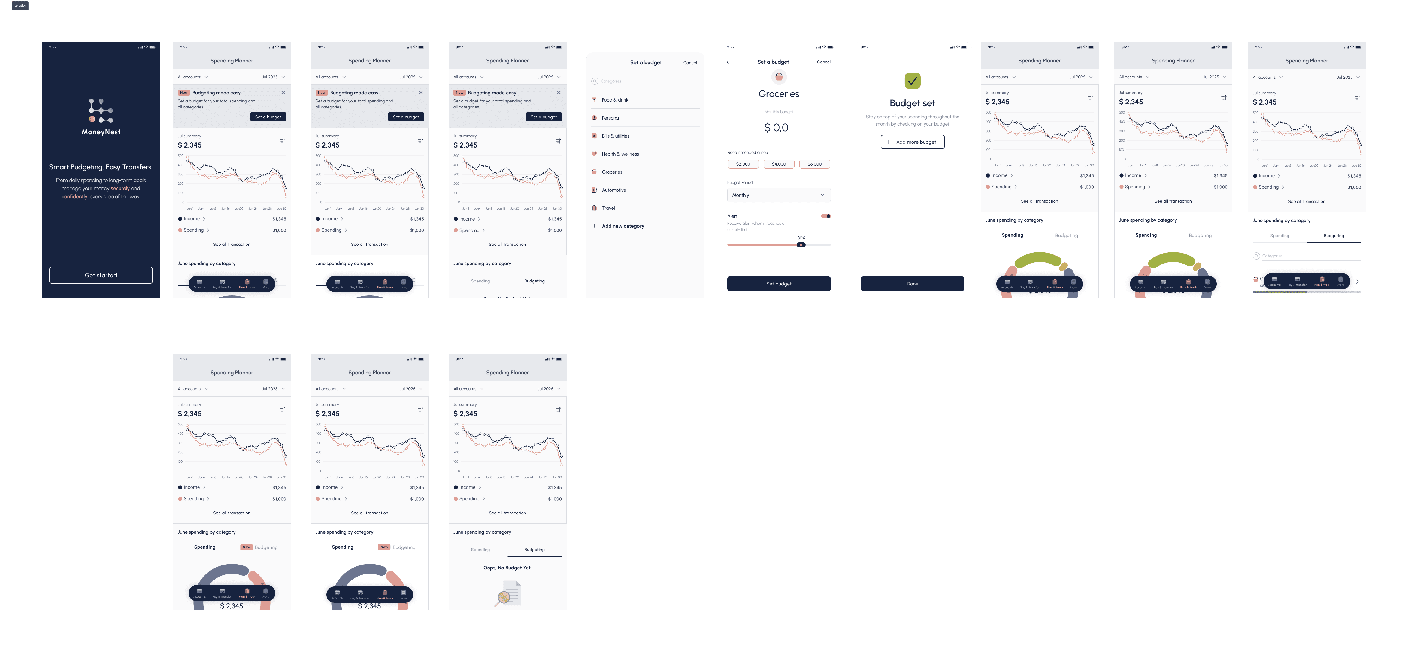 I began by mapping the Information Architecture, integrating the new budgeting components into the existing InecoMobile structure. Rather than creating a separate, isolated feature, spending insights were positioned within the natural “Spending” flow to maintain familiarity and trust.