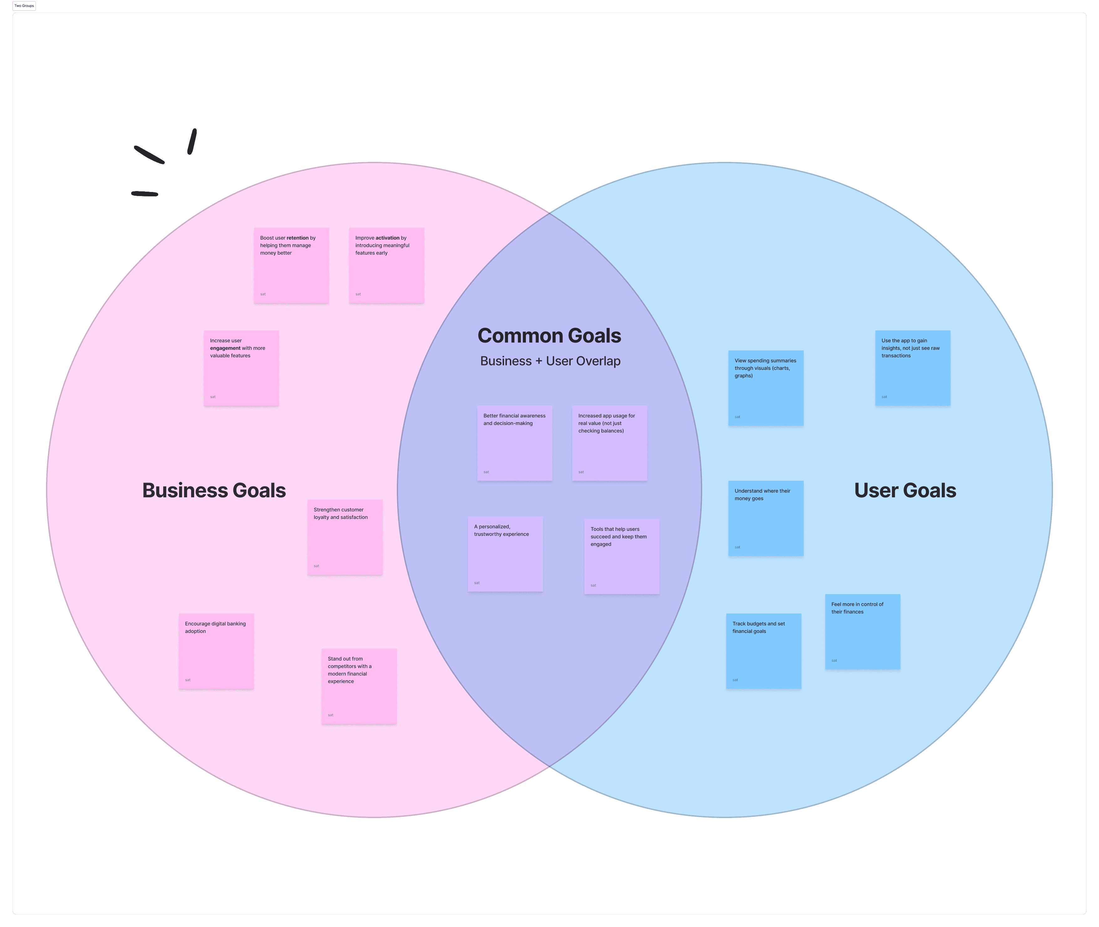 To sharpen the direction, I began by aligning user needs, business opportunity, and feasibility using a Venn diagram. While users didn’t explicitly ask for budgeting tools, interviews revealed strong excitement when visual summaries, spending limits, and goal-based tracking were introduced. At the same time, helping users better understand their finances supports engagement and strengthens InecoMobile’s competitive position. This alignment helped define a clear objective: transform raw transaction data into meaningful financial visibility.