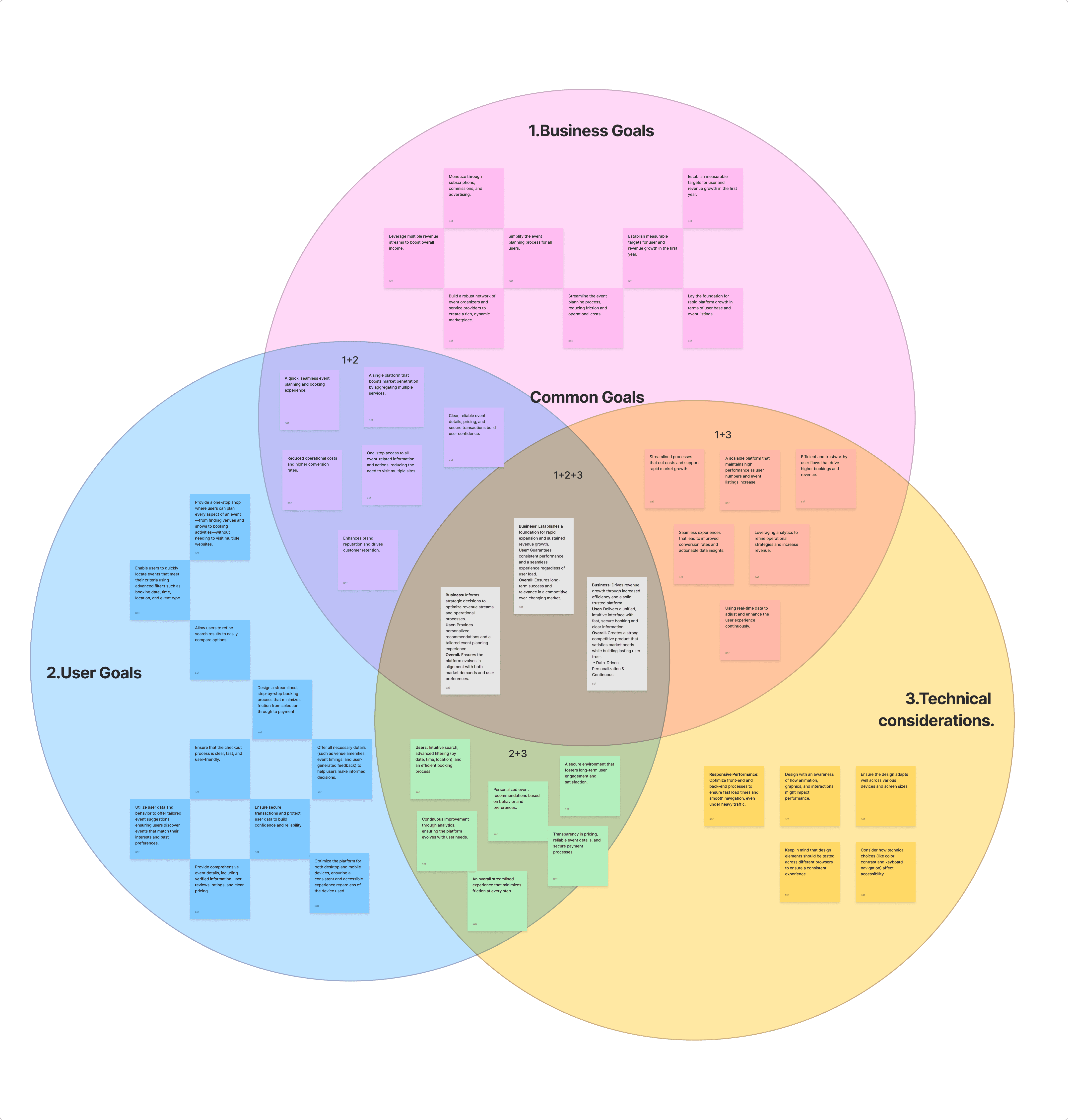 To clearly define the direction of PlanZo, I created a Venn diagram to explore the intersection of user goals, business goals, and technical considerations. This helped ensure that the final product is not only desirable for users, but also viable for the business and feasible for development.