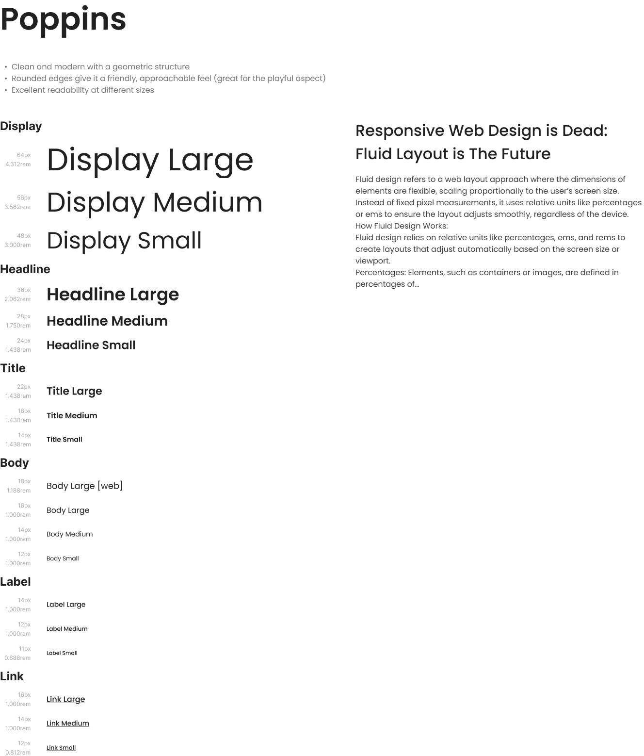 The typeface Poppins was chosen for its modern, clean, and highly readable style. Its rounded letterforms add a friendly, approachable tone while supporting a professional look across both mobile and desktop platforms.
