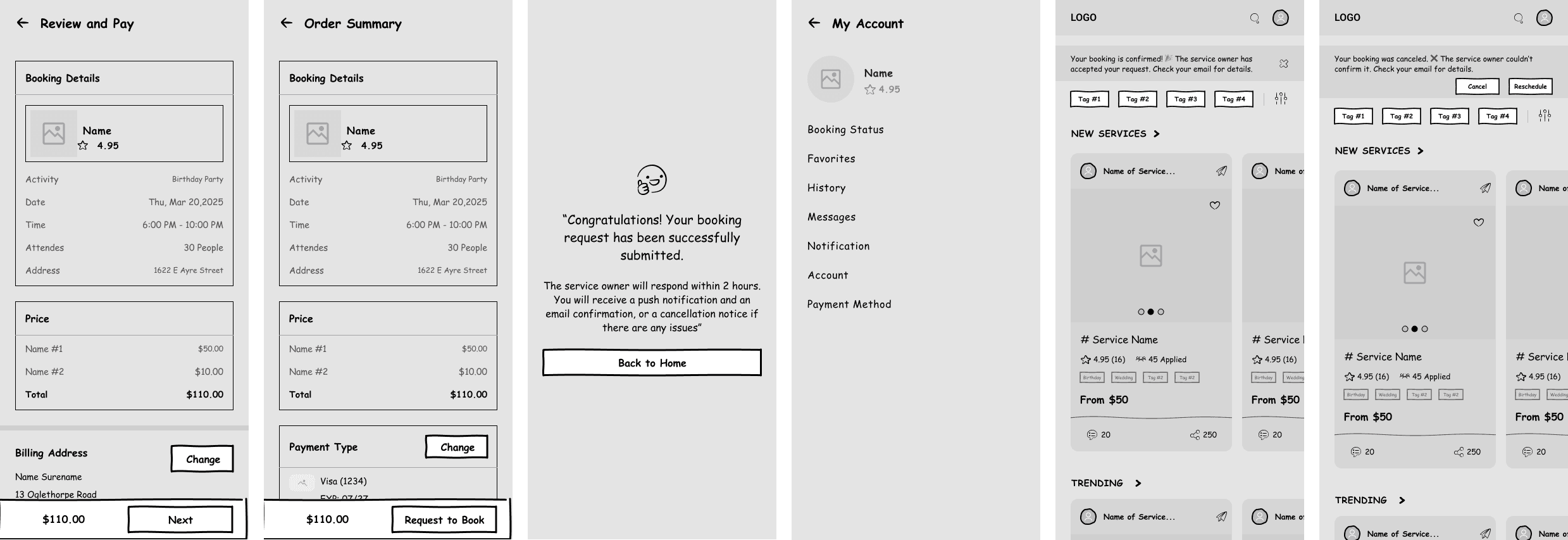 Booking a service and checking out