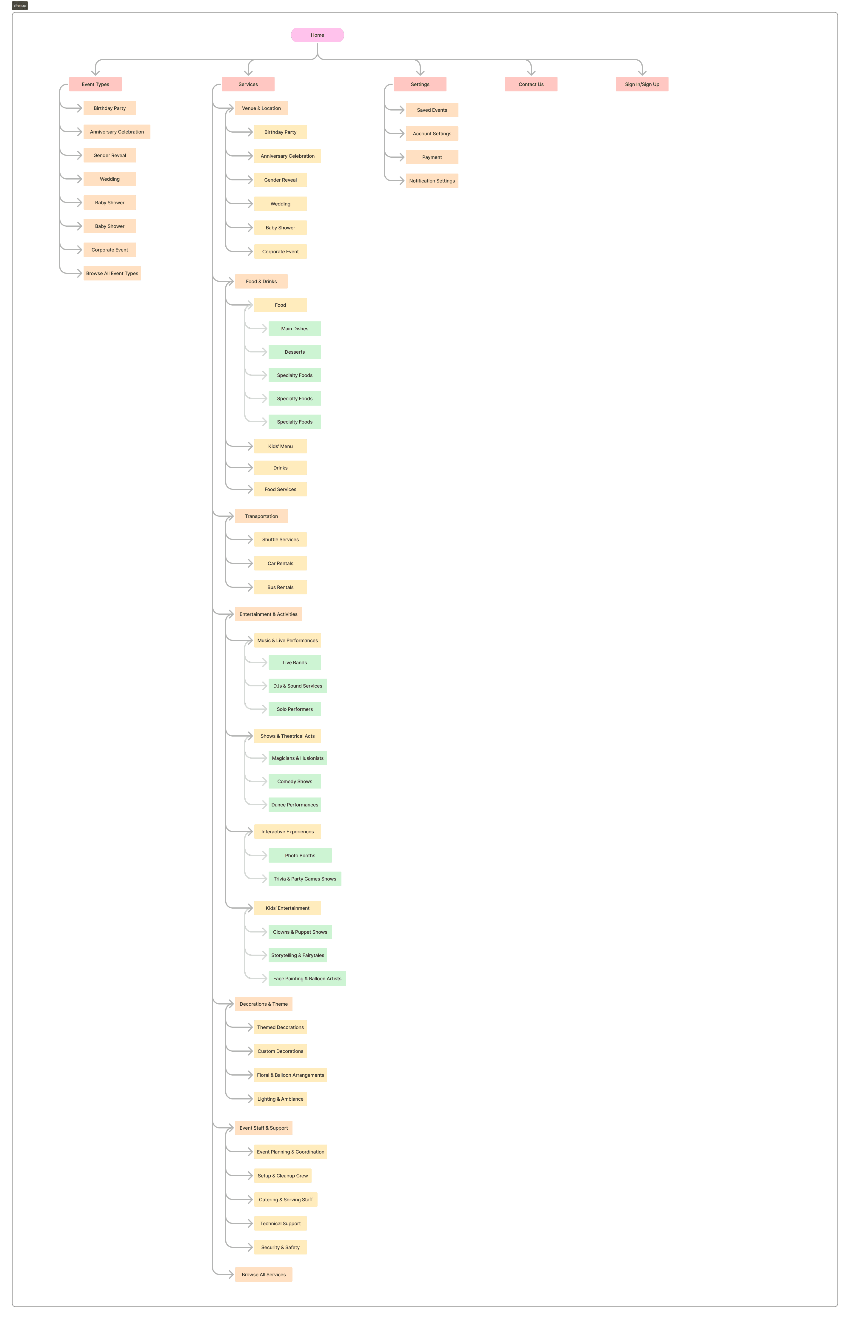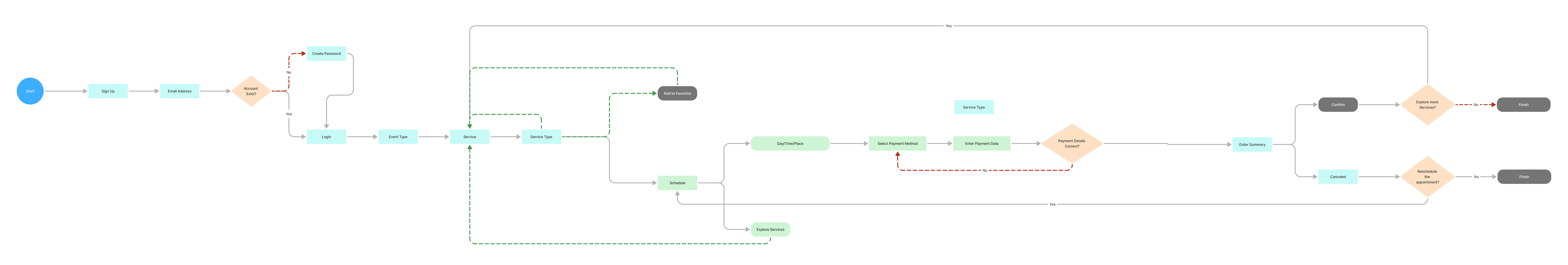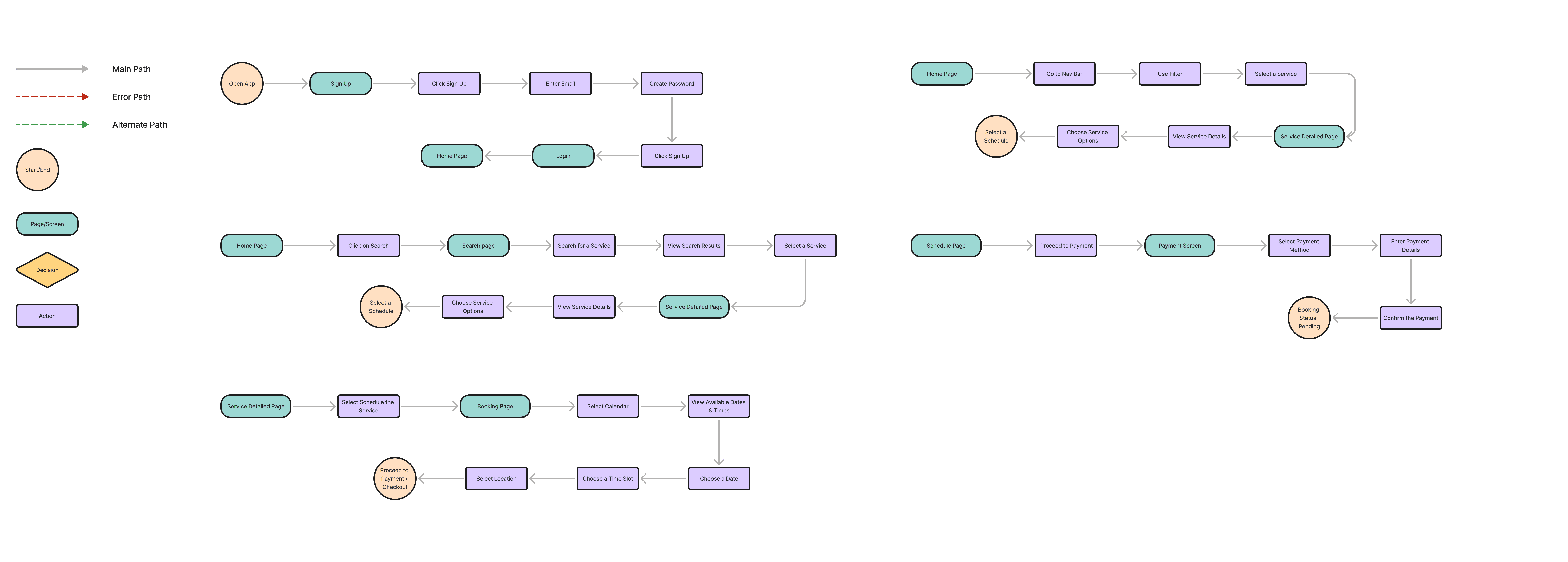 With the information architecture and persona goals in mind, I created a single, focused user flow to represent the complete journey a typical user would take within PlanZo from arriving on the platform to successfully booking a vendor.