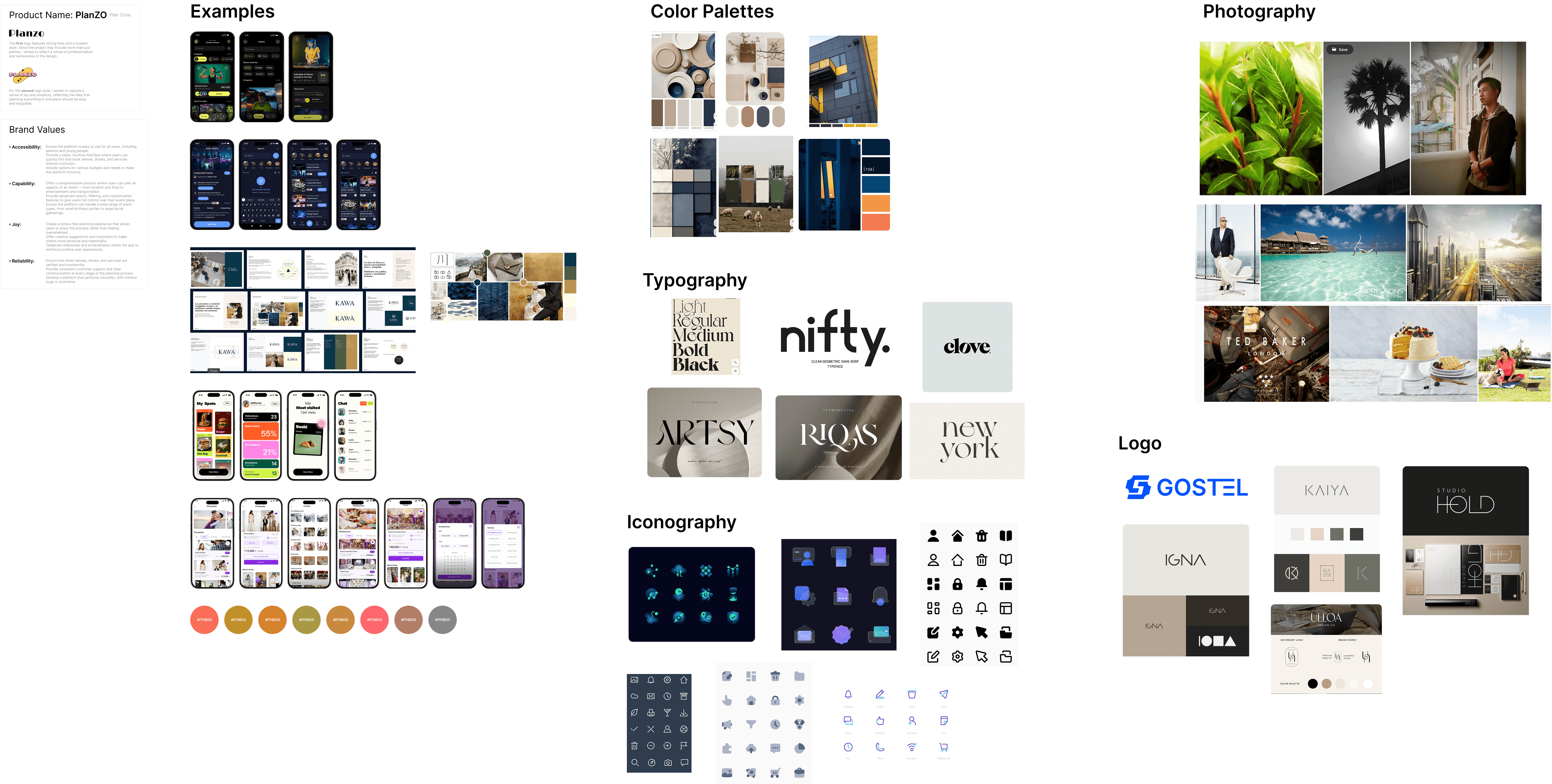 Before finalizing the visual style of PlanZo, I created a mood board to explore the emotion, tone, and visual direction of the brand. The goal was to ensure consistency between the brand values Accessibility, Capability, Joy, and Reliability and the visual language of the product.
