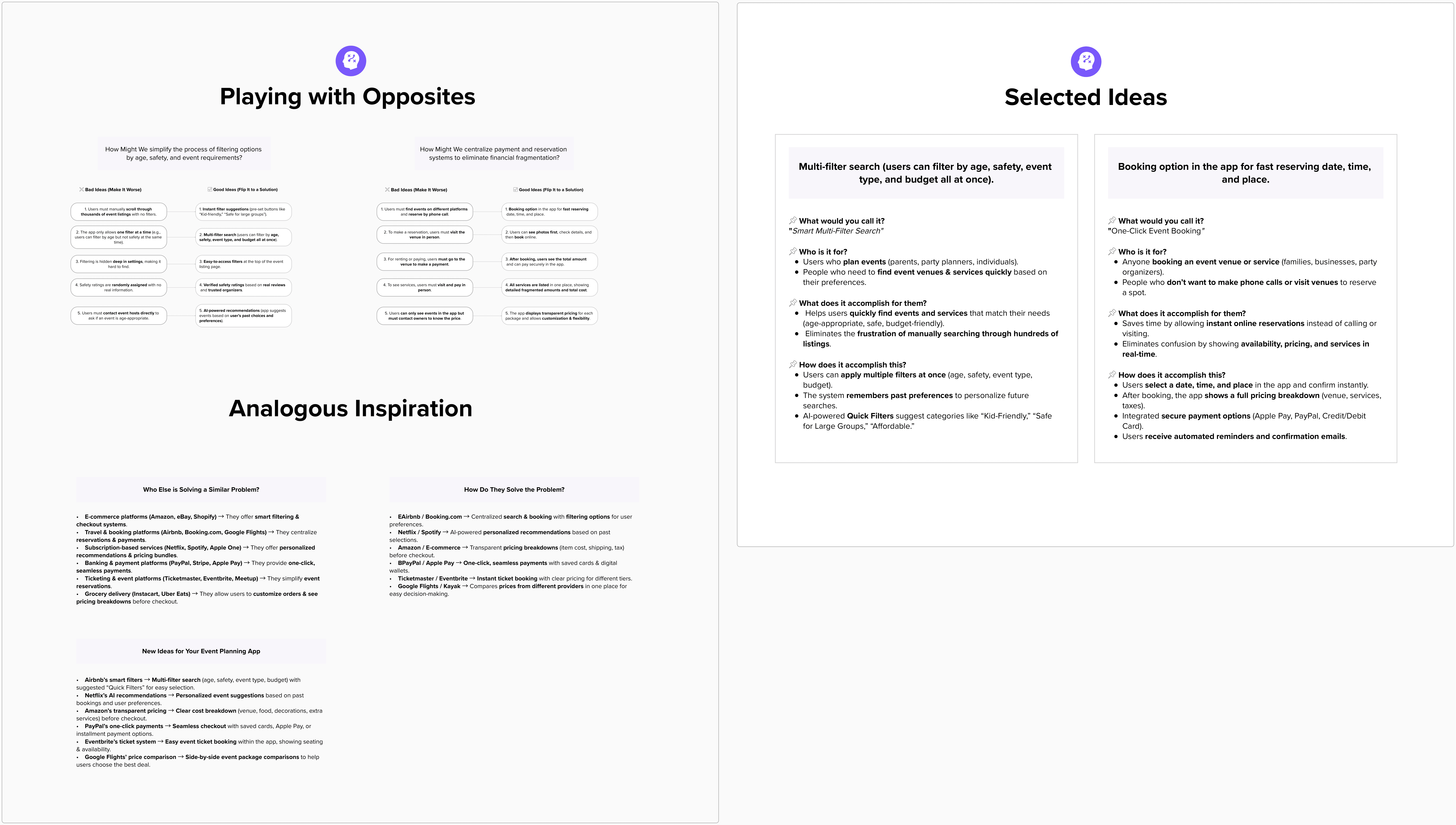 Before formal ideation, I completed a divergent thinking warm-up to open up my mind and move into a non-judgmental, idea-generating mindset. This helped me embrace quantity over quality at first, allowing both good and “bad” ideas to emerge freely.
