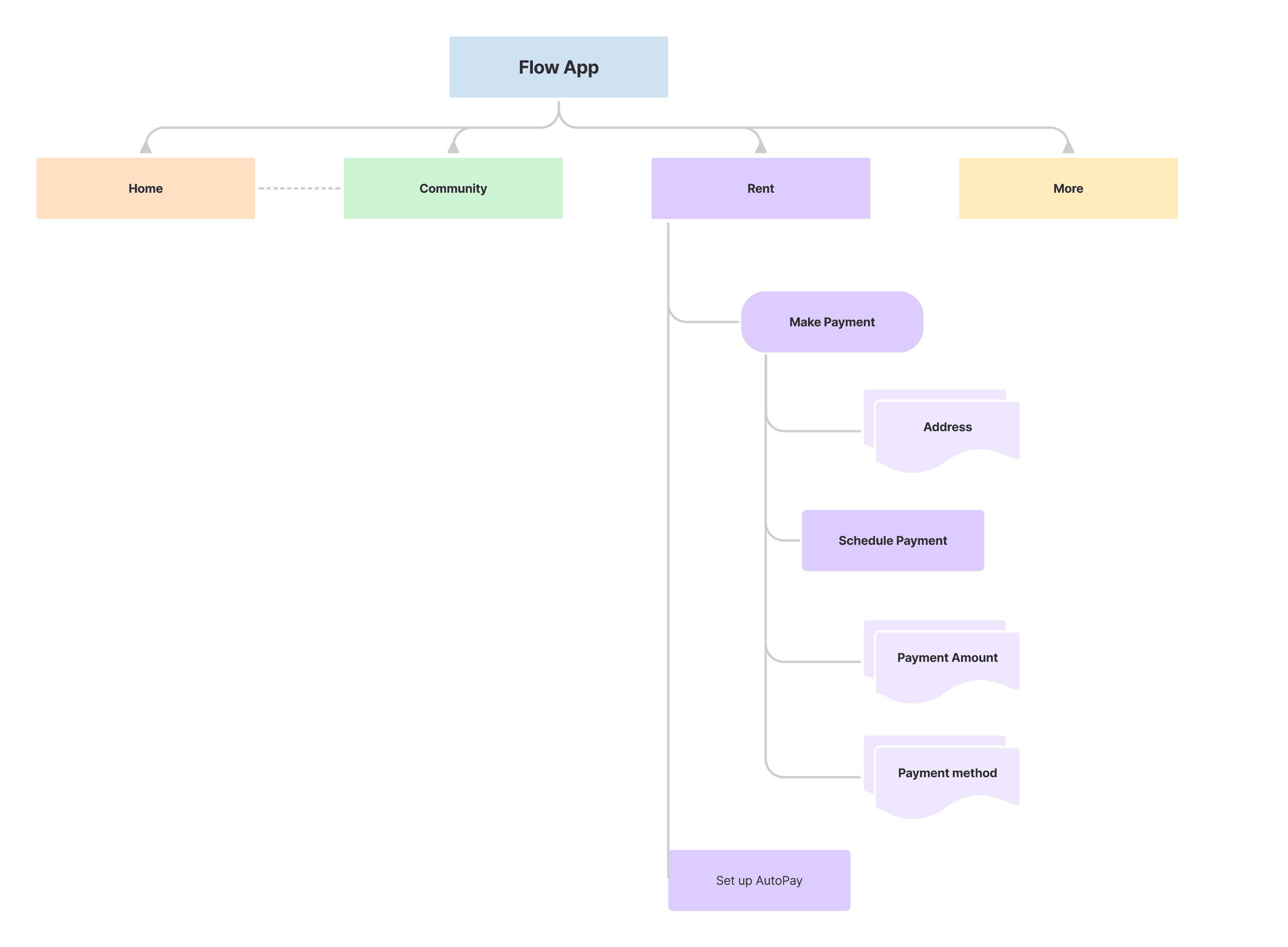 To organize the experience and define how residents access payment features, we structured the product navigation and main functional areas as shown below.